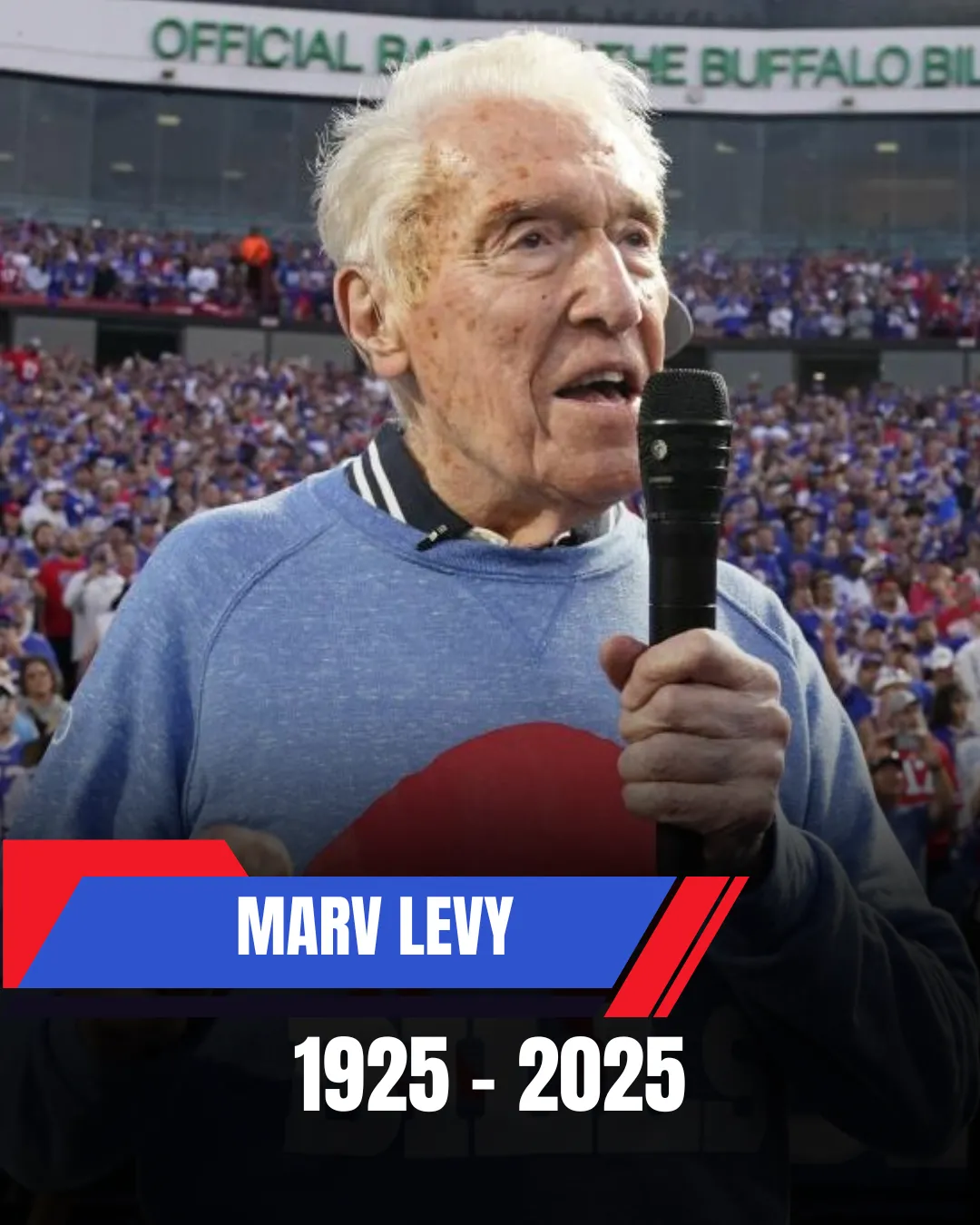 Thirty minutes ago, the Buffalo Bills community was shattered by the heartbreaking and unexpected announcement that former legendary head coach Marv Levy has passed away at the age of 100. The news, shared quietly through a brief family statement, spread through Bills Mafia faster than wildfire, leaving fans across New York and the entire NFL landscape stunned. Though Levy had reached a remarkable milestone age, the suddenness of the announcement caught everyone off guard. For the Bills—an organization that has long embraced its history and revered its foundational leaders—the loss feels monumental. Levy wasn’t just one of the greatest coaches in franchise history; he was the architect of Buffalo’s proudest era, the face of discipline and determination, and the beating heart behind one of football’s most unforgettable dynasties. The sense of grief sweeping through Bills Nation is profound, raw, and deeply emotional, as fans, players, and coaches struggle to grapple with what many describe as “the end of an era.”